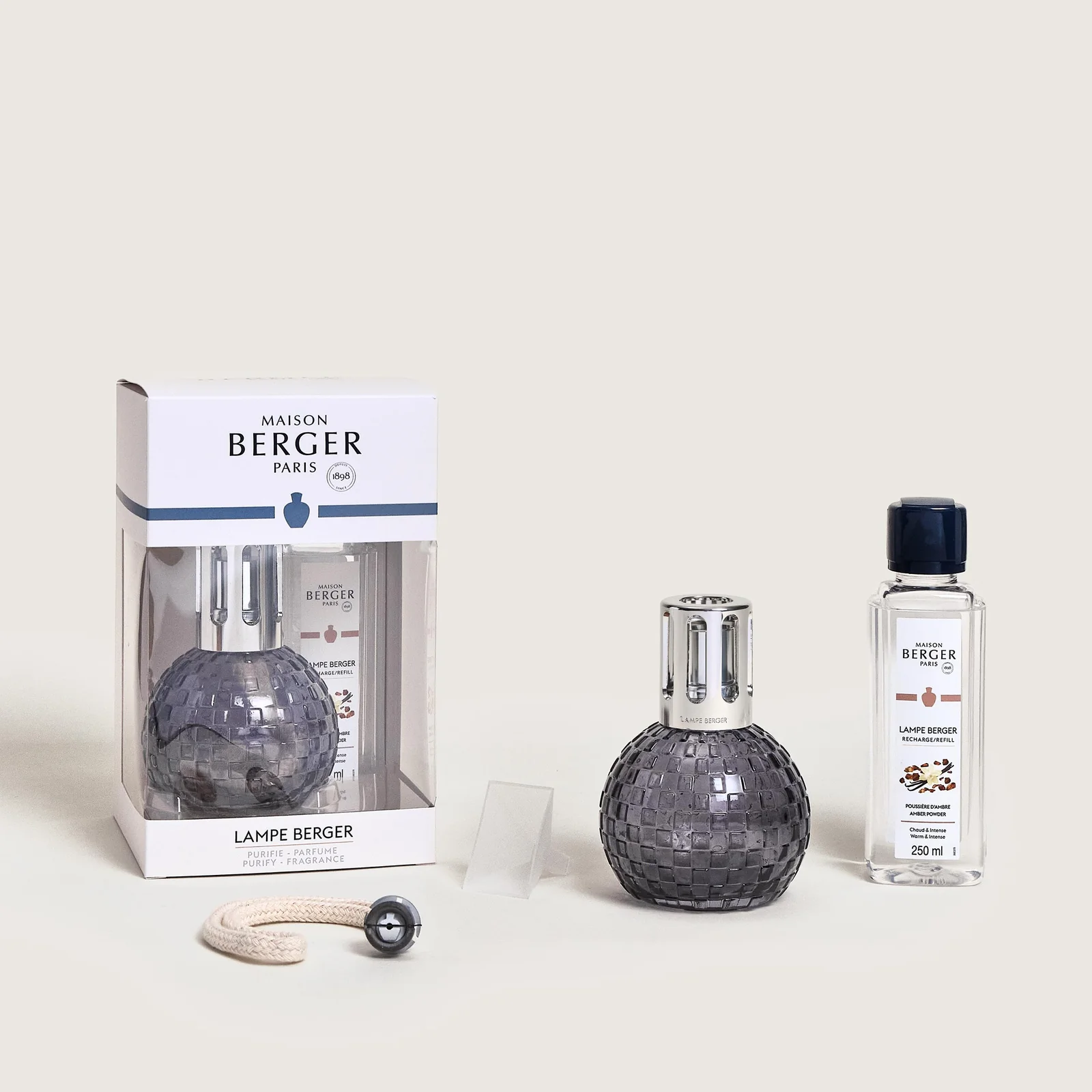 Il cofanetto regalo Lampe Berger Disco Grigia si distingue per la sua silhouette rotonda e il design ispirato alla scacchiera, scolpito in rilievo e intagliato nel vetro, che gli conferisce un aspetto moderno e dinamico. Questo design unico, abbinato alla tonalità grigia, aggiunge un tocco di raffinatezza ai vostri interni. La fragranza Poussière d'Ambre, inclusa in questo cofanetto, invita all'evasione con le sue note di testa di rosa, cannella e pepe, offrendo un'apertura floreale e speziata, ricca di carattere. Il cuore rivela un caldo accordo di sandalo, patchouli e ambra, evocando la profondità e la sensualità di materiali preziosi. Infine, le note di fondo di vaniglia, balsami e muschio bianco avvolgono lo spazio in una morbidezza confortante, per un'atmosfera raffinata e avvolgente.