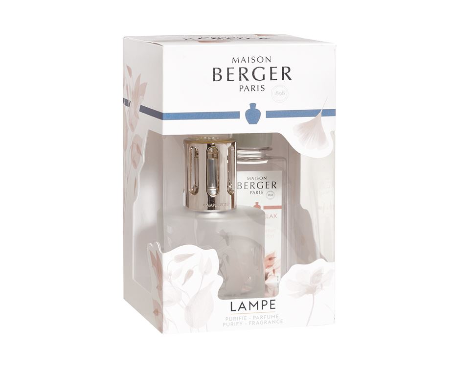 Una forma semplice in vetro smerigliato, con una decorazione floreale in trasparenza. In confezione regalo in cartoncino griffata Maison Berger con un Parfum de Maison 250ml di profum.