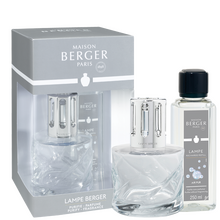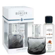 Confezione regalo in cartoncino griffata Lampe Berger completata da un flacone da 250ml di Délicat Musc.