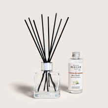 Intense fragranze da diffondere in tutti gli ambienti, grazie ai bastoncini da immergere nel profumo. Quest'elegante cubo di vetro è messo in risalto da un anello e da un bouquet di bastoncini neri, che ne evidenziano il design contemporaneo. I bastoncini, elaborati in un polimero tecnico, garantiscono una diffusione ottimale del profumo, senza che ciò provochi la decolorazione nella soluzione. Assorbendo lentamente la formula liquida, la diffondono per capillarità in modo lieve, con la comodità di un’azione continuativa.