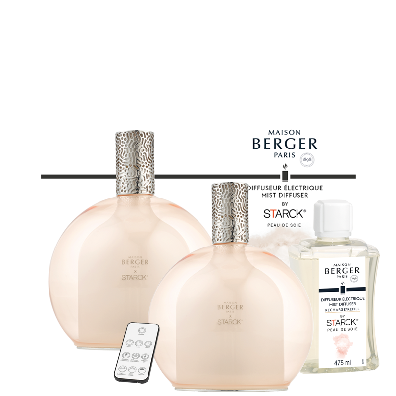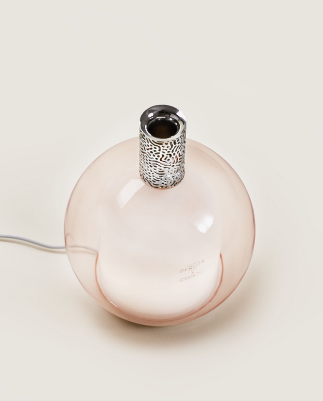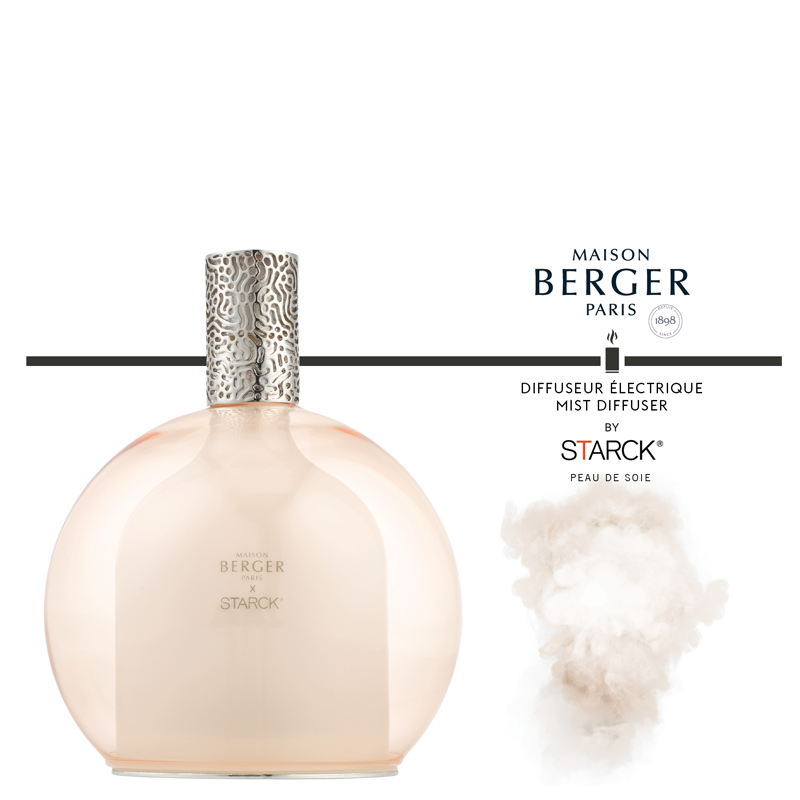 Lo slancio creativo della Maison Berger Paris e del designer Philippe Starck è ancora una volta onorato con questo diffusore elettrico Starck Peau de Soie. Realizzata da una doppia parete di vetro borosilicato, la sua sfera trasparente rivela i contorni di una seconda forma che potrebbe essere associata a un flacone di profumo. Adornato con un colore rosa deciso e delicato, contrasta delicatamente le linee marcate dell'oggetto. Una fragranza setosa poi ti raggiunge e i profumi di violetta, muschio bianco e patchouli riempiono l'atmosfera, in una miscela femminile/maschile assolutamente chic. Il fascino opera immediatamente, un sottile equilibrio tra le note olfattive di Peau de Soie e l'estetica del diffusore, che si rispondono in armoniosa risonanza. I tuoi interni diventano la cornice di questa raffinata opera d'arte.
