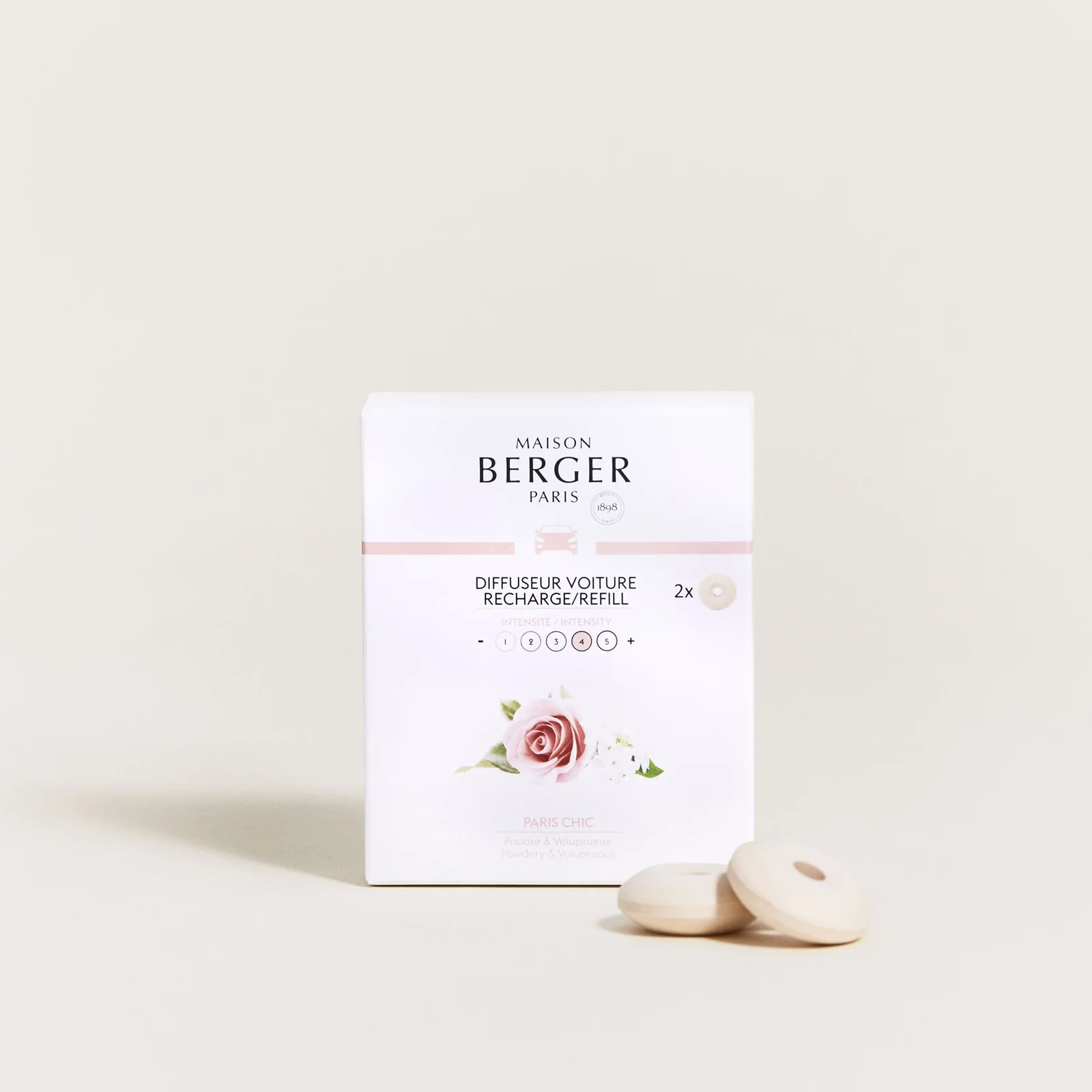 Due ricariche in ceramica, da utilizzare nel diffusore metallico per auto. Tempo di diffusione: 4/6 settimane.